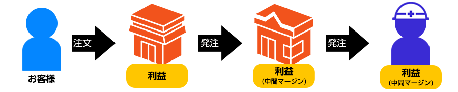 それぞれの会社間で発注するにあたり、当然各社利益が必要なわけですから、中間マージンも発生します。この中間マージンが、塗装工事における余分なコストなのです。