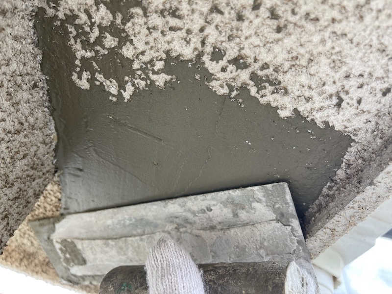 軒裏のひび割れをモルタルで補修しました