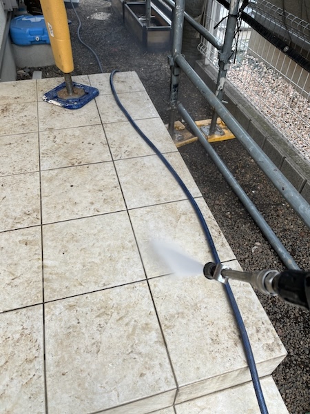 しっかり除去できるように、高圧洗浄機を使って汚れを削り取っていきます。