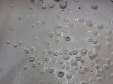 きちんと洗浄されないが為に汚れが残り、その部分に空気がたまり、塗料の乾燥中に気泡が出来てしまうのです。